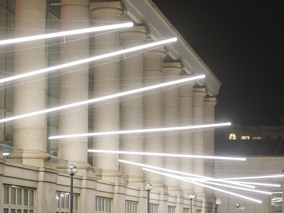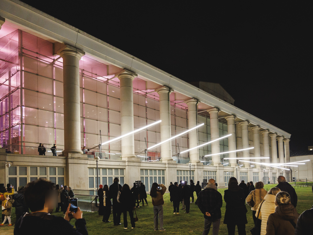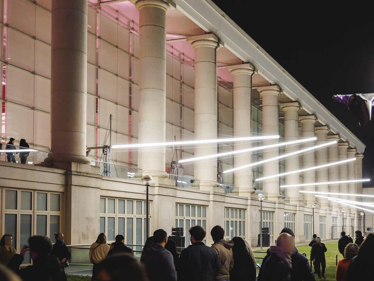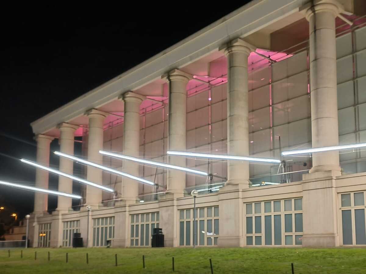TAGA Proyectos Escénicos carried out the structural certification of the project Fremor, an artwork by artist Marc Vilanova, installed on the elevated walkway of the Teatre Nacional de Catalunya (TNC) in Barcelona, as part of LLUM BCN 2026 – Festival of Light Arts.